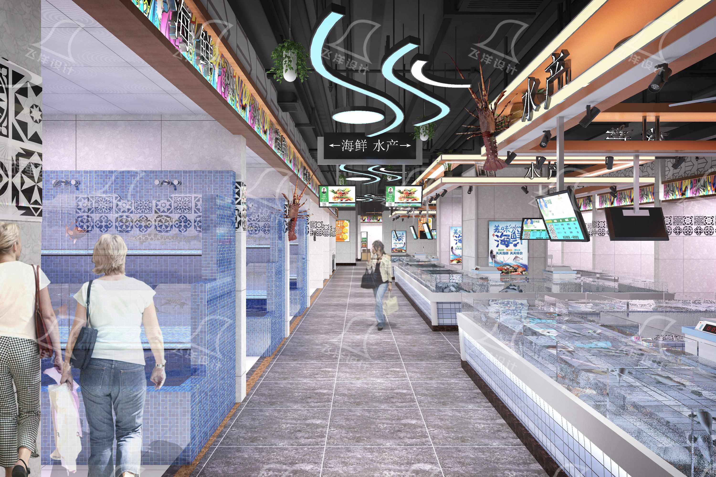 其次,菜市場昏暗是壓抑的另一大誘因。低矮天花板、封閉墻體、不足的照明,讓市場常年像陰天,看不清商品也讓人感到沉悶。現(xiàn)代農(nóng)貿(mào)市場建筑設(shè)計正通過空間與光線優(yōu)化改變這一現(xiàn)狀,打破封閉盒子思維,采用高挑空設(shè)計,搭配大面積天窗或玻璃幕墻,讓自然光充分涌入,照亮新鮮食材的同時,讓空間更通透。陰天或夜晚則用柔和的漫反射燈光補(bǔ)充,攤位上方設(shè)條形燈帶,通道裝筒燈,光線均勻不刺眼。通風(fēng)上采用自然加機(jī)械的模式,屋頂設(shè)可開啟通風(fēng)窗利用熱壓循環(huán)空氣,生鮮區(qū)加裝排風(fēng)系統(tǒng)及時帶走異味,讓空氣流動起來,消解憋悶感。