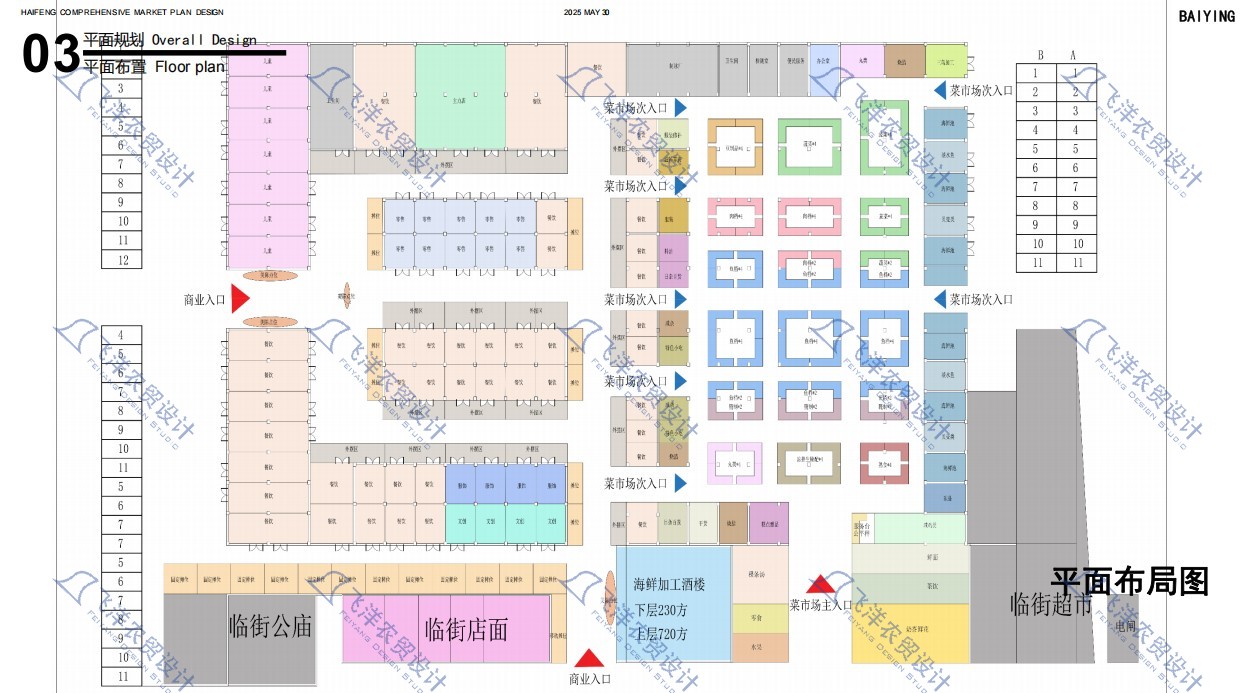 總結:一套科學的動線系統,能顯著提升坪效,降低運營管理成本,并為未來的業態調整預留可能。飛洋設計的布局方案,始終服務于一個目標:讓買賣雙方,都在更輕松、更高效、更安全的空間里,感受真正的市井生機。