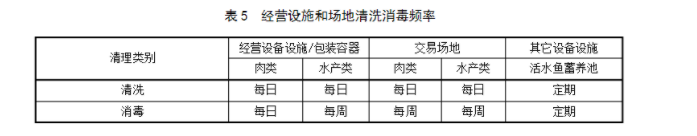 6.3.2.1、閉市后,肉類和水產品經營戶應按表5的規定進行清洗和消毒。
