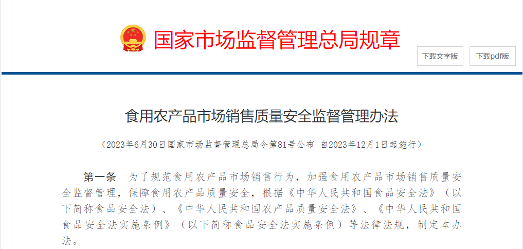 上一篇:2023食用農產品市場銷售質量安全監督管理辦法 ??? 下一篇:蕭山區農貿市場及農副產品銷售集散點改造提升