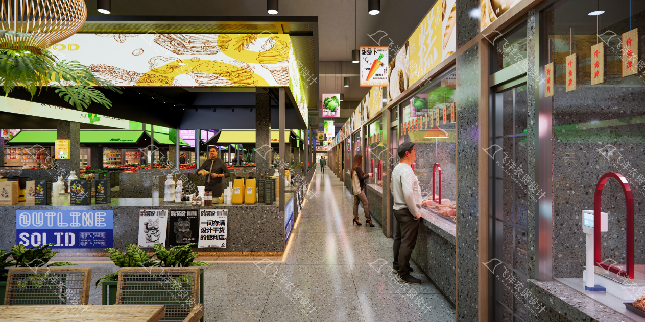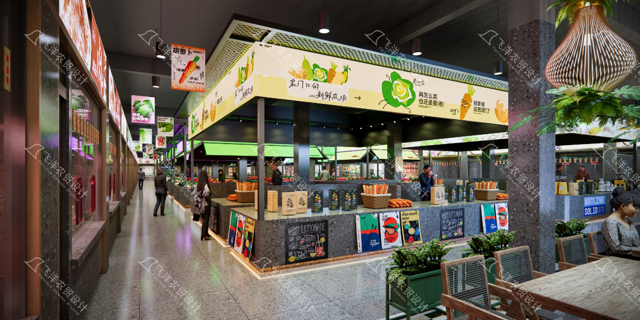 溫度融入:拒絕冰冷與過度裝飾,通過柔和的燈光、親切的導視、以及便利的休憩點設置(如帶充電接口的座椅),讓買菜從任務轉化為一種輕松、安心的日常儀式。