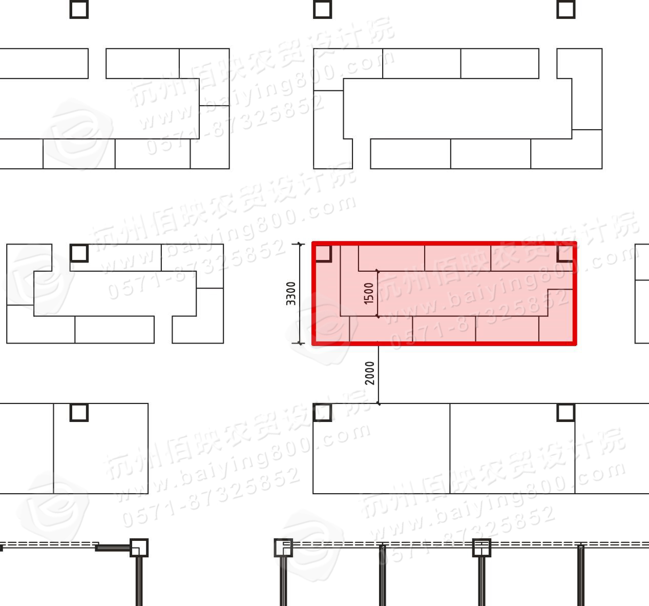 在這個例子中,柱子過密,在預(yù)留2米寬通道之后,攤位總寬只有3.3米,而攤位內(nèi)空部分僅有1.5米,背對背的兩個經(jīng)營者每人平均分得的活動寬度僅有0.7米,完全無法滿足日常經(jīng)營活動,更無法放下配套設(shè)備(如冰箱、操作臺、水槽等)。要滿足攤位的常規(guī)寬度4.5米以及通道的正常寬度2.5米,應(yīng)該將柱距增加1.7米,那么這個攤位的布置就能夠完美無瑕了,而現(xiàn)狀如此別扭的攤位空間,完全是可以通過調(diào)整柱距來避免的。