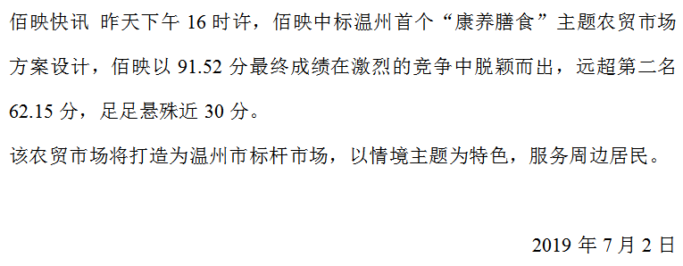 中標(biāo)公示:佰映中標(biāo)溫州首個(gè)“康養(yǎng)膳食”主題